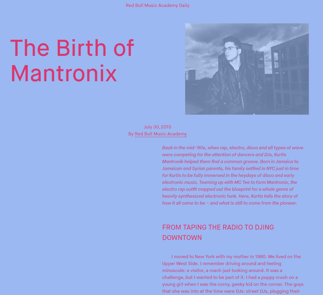 As well as his own projects, under his moniker and that of Mantronix, Kurtis has produced, written and remixed tracks for numerous international acts, including; Justin Timberlake / Robbie Williams / Rihanna / NSYNC / Duran Duran / Shirley Bassey / Dido / Joyce Sims / Hurts / Madcon / Pink / Kylie Minogue/ Luciana / Tinie Tempah / Junior Senior / S Club / Goldfrapp / Future Sound Of London / Bob Sinclair / Mary J. Blige / Kelly Rowland / Simply Red / Atomic Kitten / Nsync / Lisa Scott Lee / Nu Shooz / Michael Gray / Mica Paris / Korn / Liberty X / Nocera / Paul Haig / Victoria Beckham / Emma Bunton / Jocelyn Brown / Epmd / Duran Duran / Jackie Graham / Steve Reich / Curtis Mayfield & Ice T / Brian Transeau (BT) / Axwell Hurts / Terence Trent D'arby / Natalie Appleton / Aswad / Linda Clifford / Isaac James / John Paul Gaultier / Just Ice / T La Rock / Chamonix...
